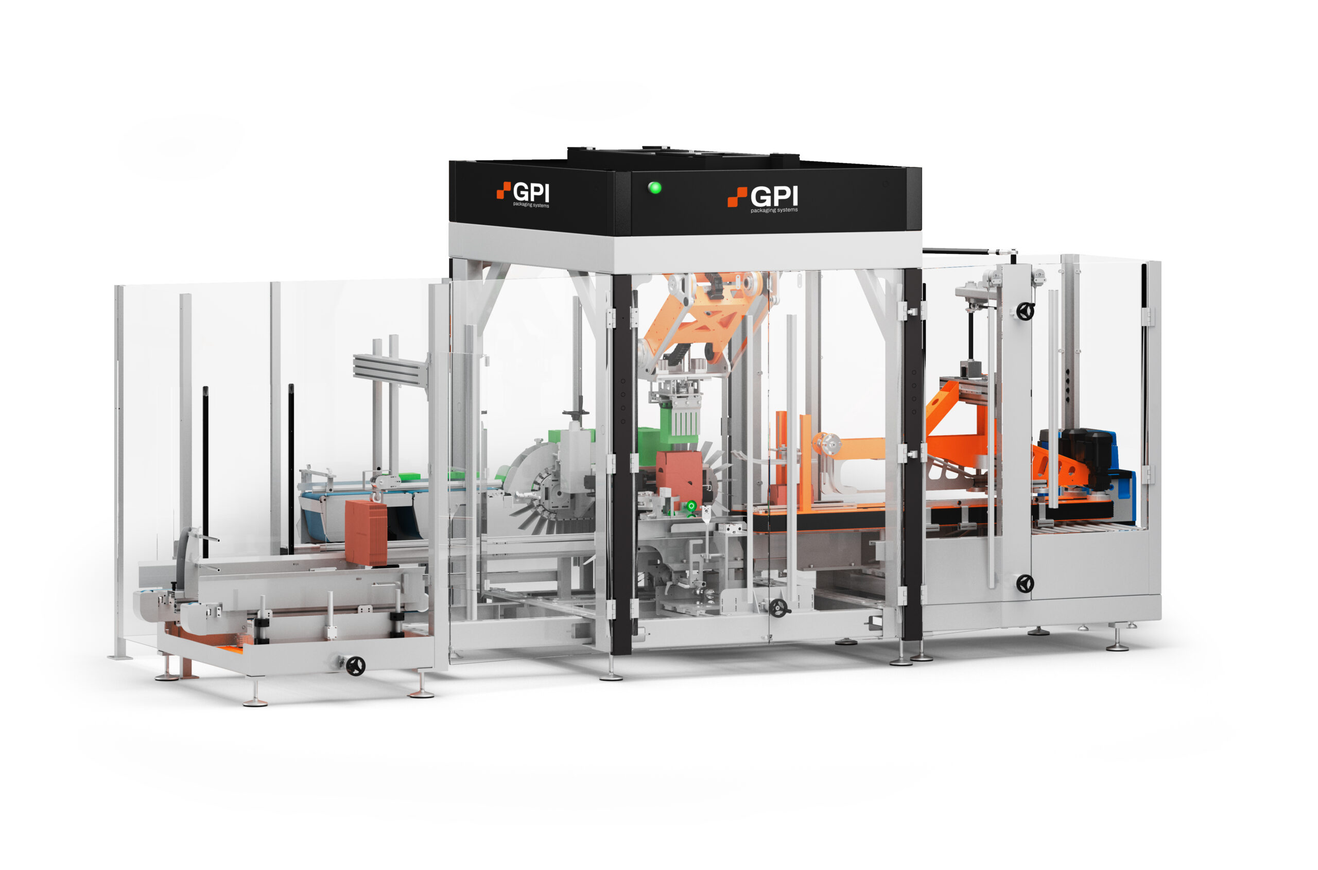 Among the food packaging machinery developed by GPI, the MIR2A-CA monoblock with a two-axis robot stands out for its ability to guarantee consistently high performance. It performs all the steps of the process: forming, filling, and sealing of rsc cases, within a single machine.